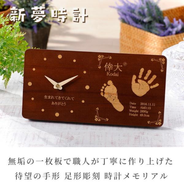 新夢時計 赤ちゃん 手形 足型 木製 時計 出産祝い 出産内祝い 内祝い お返し 両親 手形 足形 1歳 100日祝い 日本製 置時計 掛け時計 手足型