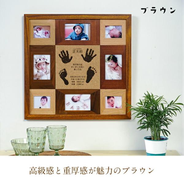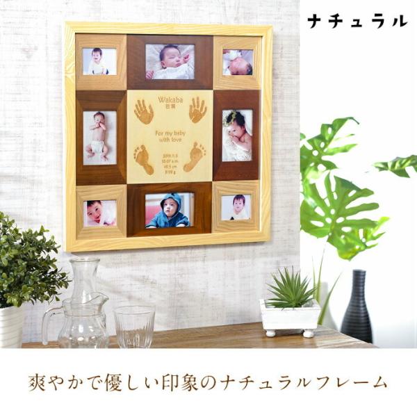 写真が8枚入る賑やかな手形足形天然木フォトフレーム