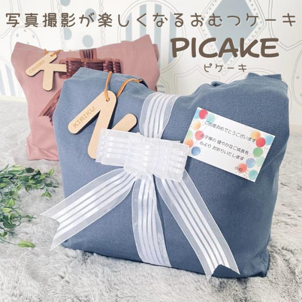 picake 出産祝い おむつケーキ 名入れ ギフト ベビー 誕生記念 木製バナー マンスリーバナー フォトフレーム ベビーシャワー おしゃれ おむつバッグ