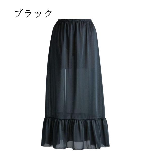 ペチコート 透け防止 インナースカート ロング ロングスカート ワンピース マキシ丈 フリフリギャザー 黒