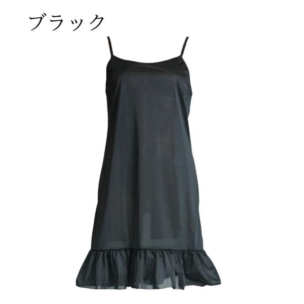 スリップ ペチコート ロング ワンピース インナーワンピース インナー 透けない 透け防止 フリフリギャザー 黒