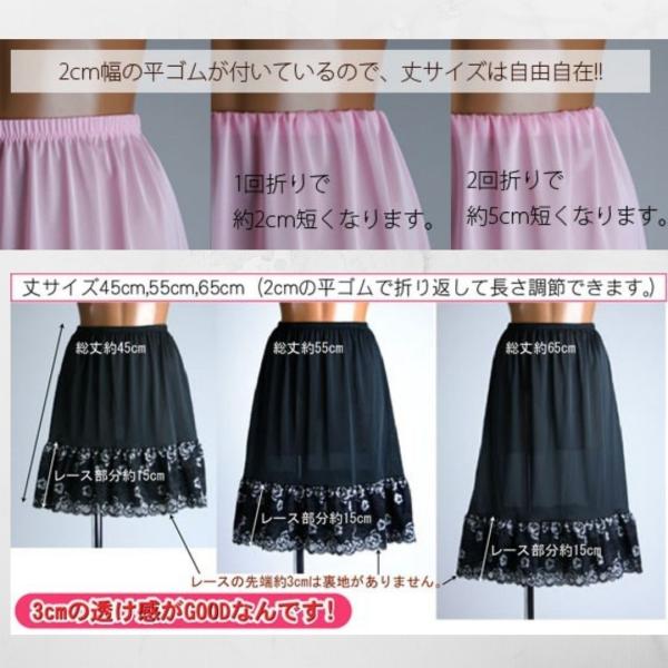 チラ見せ 花柄ストレッチレースのペチコート 日本製 9色展開