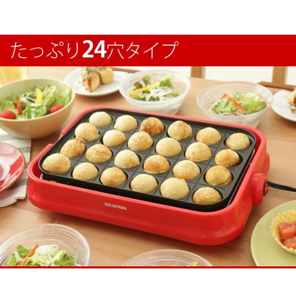 たこ焼き器 着脱プレート式 たこ焼きプレート 24穴 フッ素コーティング 卓上 プレート タコ焼き機 電気 着脱式 アイリスオーヤマ PTY-24-R *