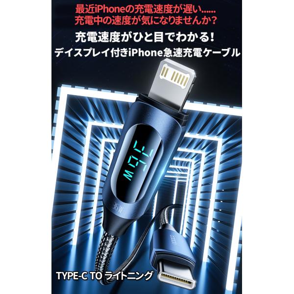 PD 36W急速充電・高速データ転送も可能な充電速度表示ディスプレイ付です