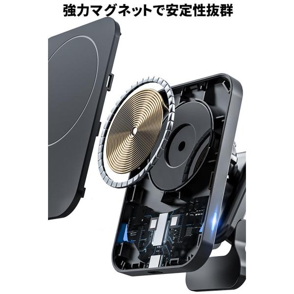 ワイヤレス充電器 車 15W 急速充電 スマホホルダー magsafe 磁石 車載ホルダー スマホスタンド iPhone 15