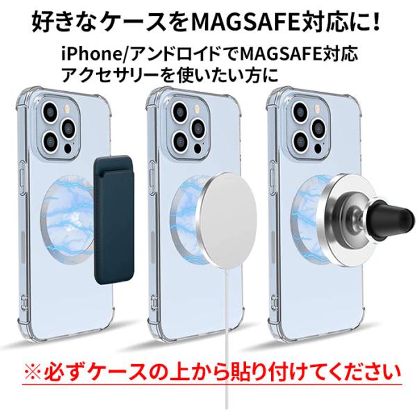 スマホケースに貼り付けるだけでMAGSAFE対応アクセサリーが使用できます