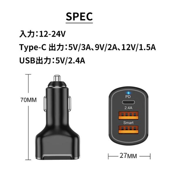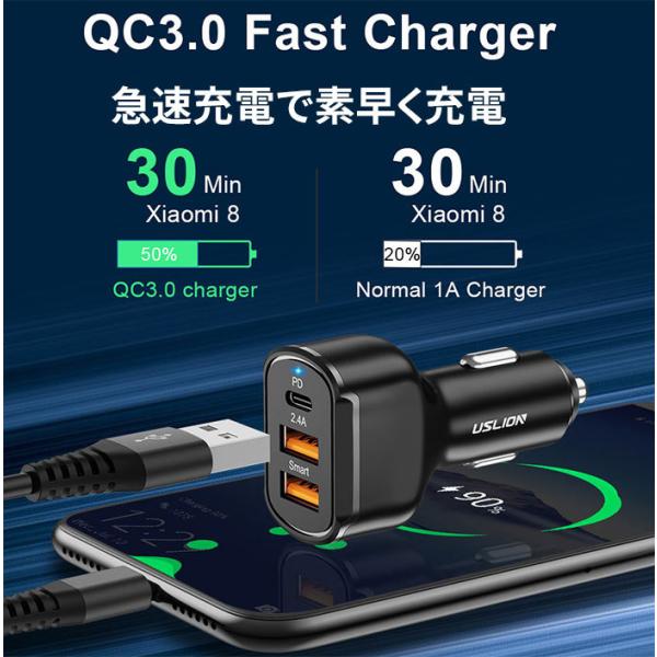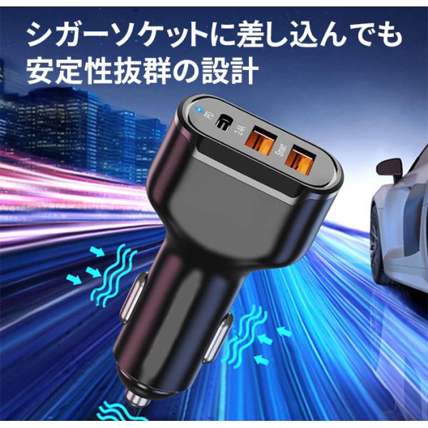カーチャージャー シガーソケット 急速充電 3ポート 車載充電器 usb PD usb-c typec 充電器 スマホ 車 アンドロイド iPhone13 pro iPhone12 スマートフォン