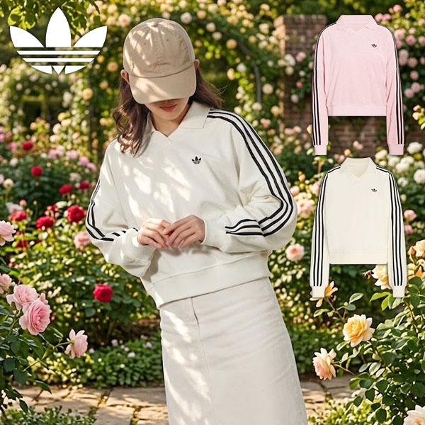 2026春夏新作 アディダス レディース 長袖 ポロシャツ adidas TERRY TOWEL V NECK LONG SLEEVES Vネック パイル タオル生地 ORIGINALS オリジナルス VZ624
