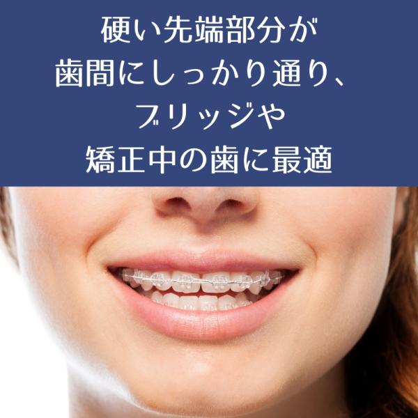 ・用途:ブリッジ/矯正器具(ブレース)/歯間が広い箇所などに特化した歯間フロス。