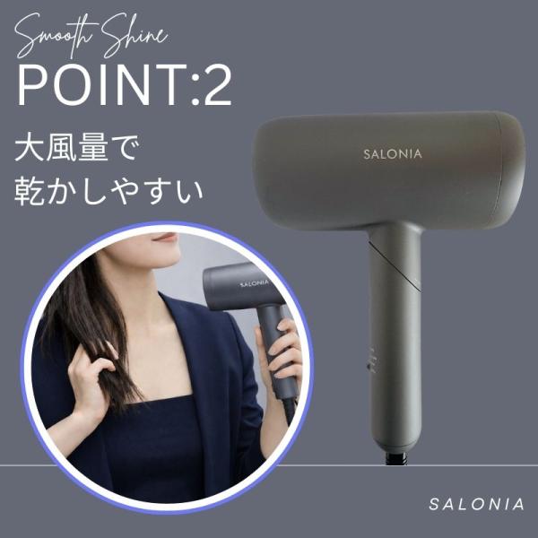 ドライヤー 大風量 サロニア スムースシャイン ドライヤー グレー ピンク ブラック ホワイト