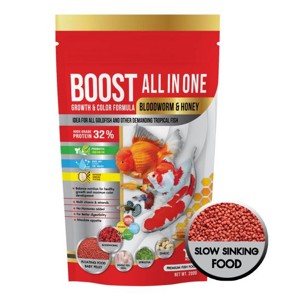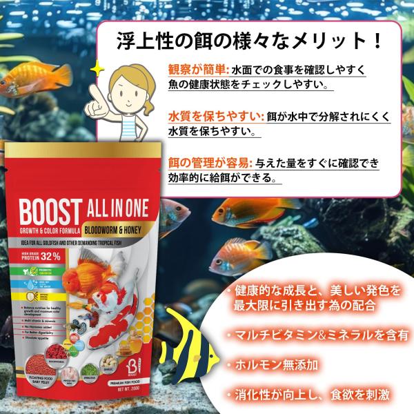 【BOOST ALL IN ONE】 魚 餌 浮上性 100g プロテイン32% 熱帯魚 小型 主食 小さな顆粒タイプ エサ えさ フレーク スピリルナ 高タンパク 天然成分 プレミアム