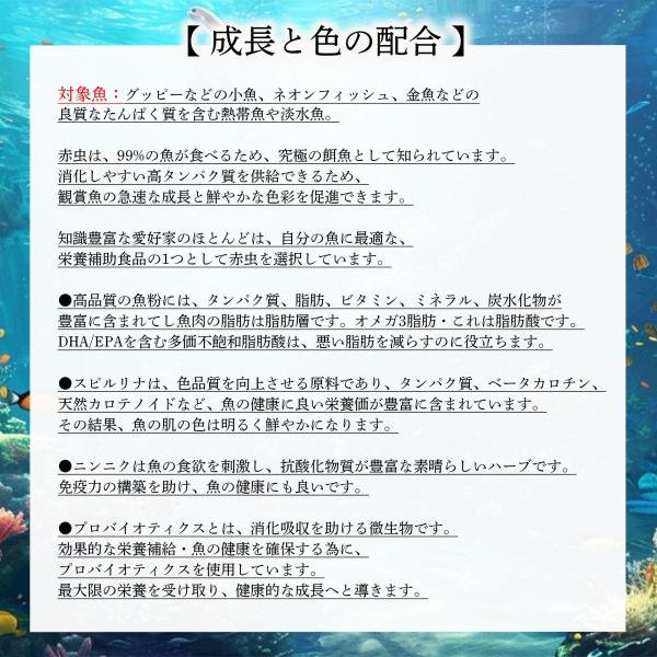 赤虫は熱帯魚と金魚全般の餌として適しており、嗜好性が高く、栄養価も豊富です。