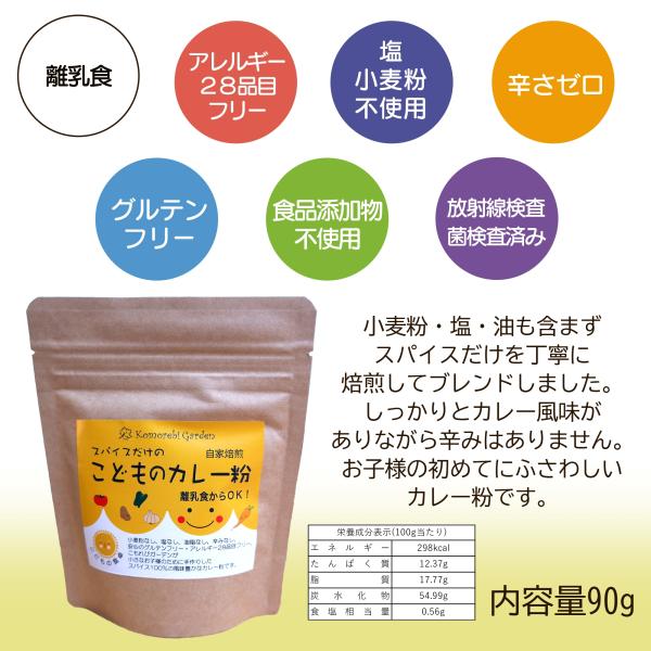 こどもの カレー粉 無添加 1袋 90g 甘口 離乳食 辛味なし 小麦粉不使用 介護職 幼児食 スパイス カレールー 離乳食中期から食べられる