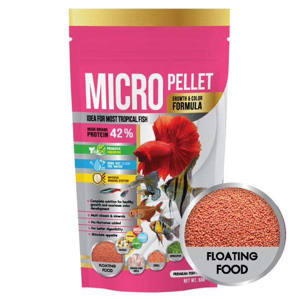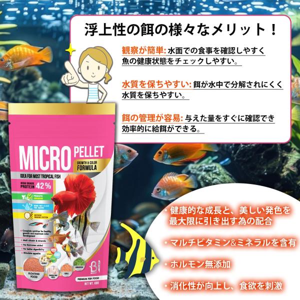 【MICRO PELLET】 魚 餌 浮上性 60g プロテイン42% 熱帯魚 小型 主食 小さな顆粒タイプ エサ えさ フレーク スピリルナ 高タンパク 天然成分 プレミアム