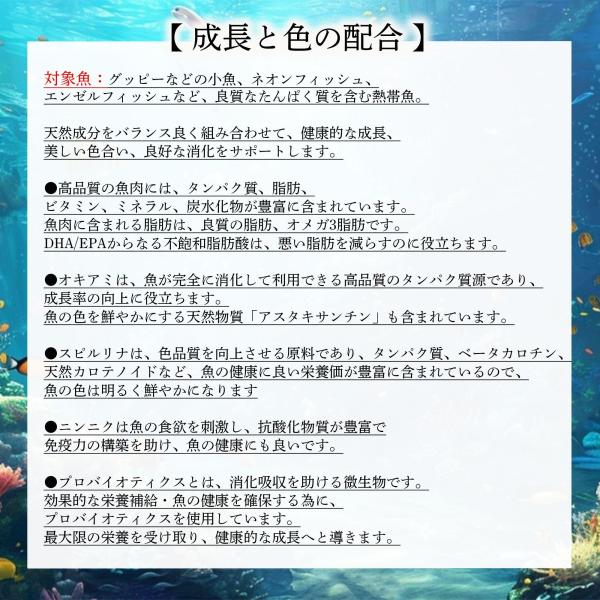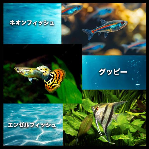 【対象魚】グッピーなどの小魚、ネオンフィッシュ、エンゼルフィッシュなど、良質なタンパク質を含む熱帯魚