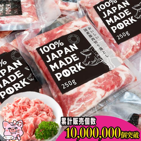 【冷凍庫内で嵩張らない】国産 豚肉 切り落とし 便利な小分け 製造日より8ヶ月保存可能 冷凍 豚こま 1.5kg (250g × 6パック)