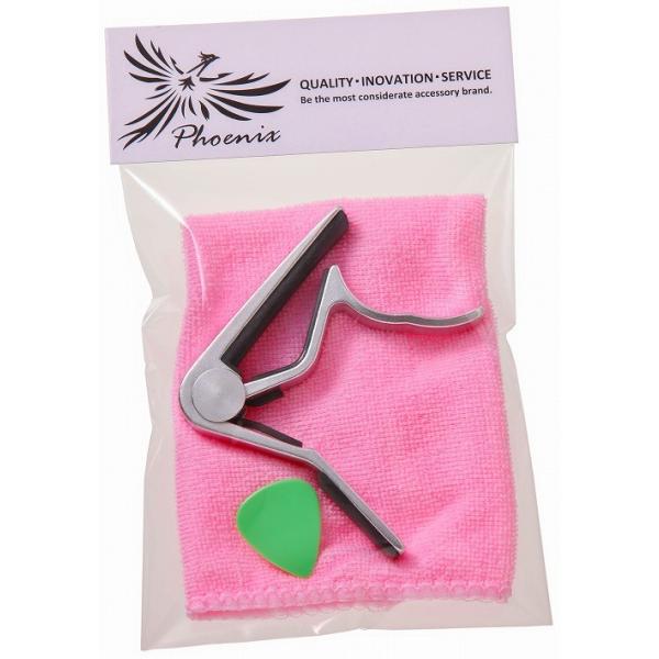 カポタスト ギター アコギ ワンタッチ Phoenix カポ クロス ピック メーカー保証書 4点セット フェニックス /capo タイプ GF シルバー