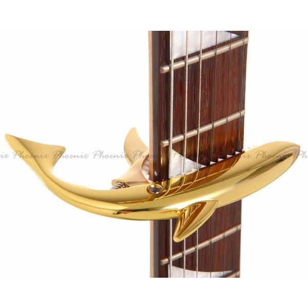カポタスト サメ Phoenix ワンタッチ ギター カポタスト クロス ピック メーカー保証書 4点セット/シャーク カポ ゴールド