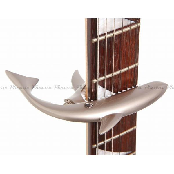 カポタスト サメ Phoenix ワンタッチ ギター カポタスト クロス ピック メーカー保証書 4点セット/シャーク カポ シルバー