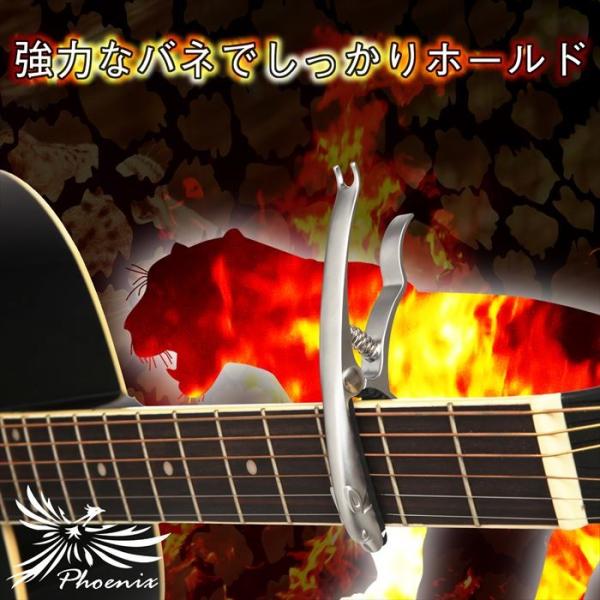 カポタスト ギター アコギ ワンタッチ Phoenix カポ クロス ピック メーカー保証書 4点セット フェニックス /capo ジャガー:シルバー