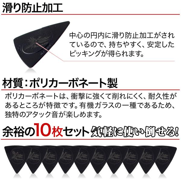 Phoenix ギター ピック 3in1 10枚セット 3way 3方向 3種厚み 滑り止め エレキギターピックアコースティックギターピック/3wayピック