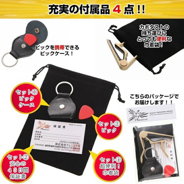 カポタスト ワンタッチ ギター カポ タスト 巾着袋 ピック ピックケース メーカー保証書 アコギ エレキ エレアコ ガットギター/ゴールド タイプR新セット
