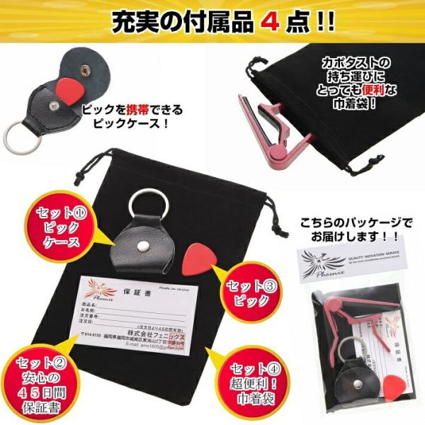 カポタスト ワンタッチ ギター カポ タスト 巾着袋 ピック ピックケース メーカー保証書 アコギ エレキ エレアコ ガットギター/ピンク タイプR新セット