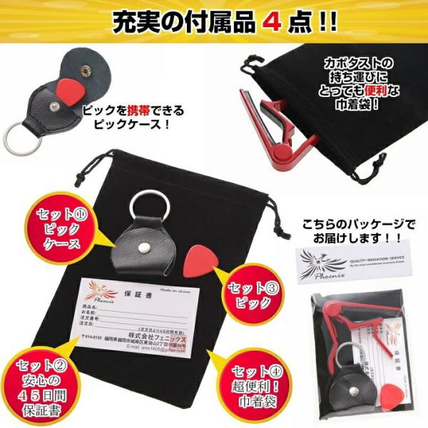 カポタスト ワンタッチ ギター カポ タスト 巾着袋 ピック ピックケース メーカー保証書 アコギ エレキ エレアコ ガットギター/レッド タイプR新セット