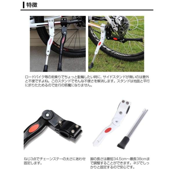 B032 自転車用 軽量 サイドスタンド キックスタンド 長さ調節可能 全2色 チェーンステーに固定