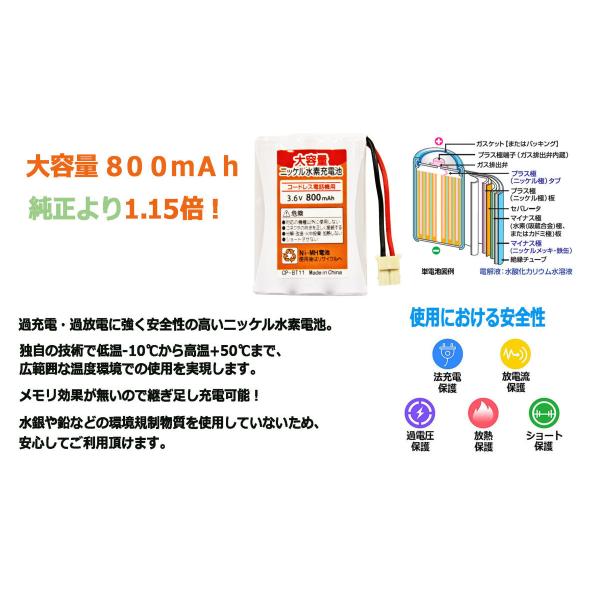 CP-BT11 サンヨー NTL-200 TEL-BT200 パナソニック BK-T411 コードレス電話子機用互換充電池 子機バッテリー 子機用バッテリー