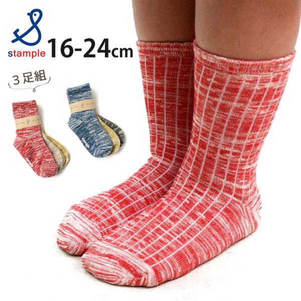 クルーソックス 3足セット 靴下 滑り止め付き マーブル 3Pソックス クルー丈 STAMPLE スタンプル 16-18cm 19-21cm 22-24cm 72851 子供 男の子 女の子