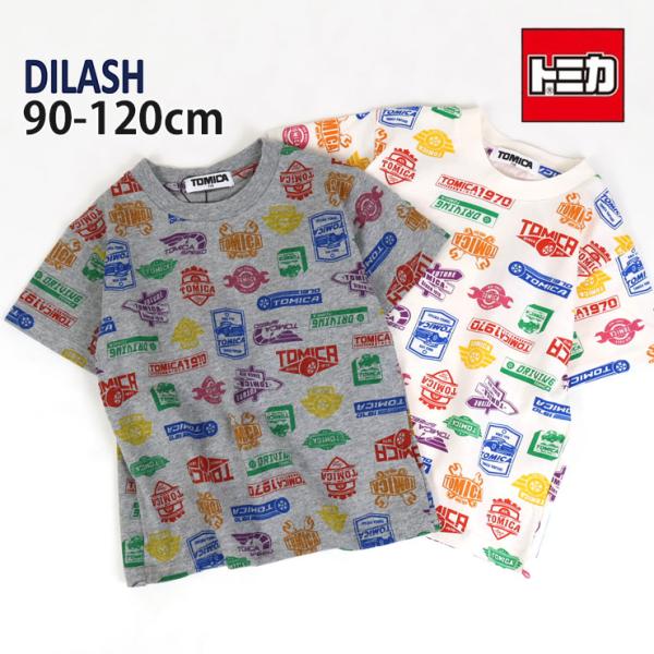 半袖Tシャツ トミカコラボ ワッペン風 ロゴプリント 総柄 綿100% TOMICA DILASH ディラッシュ DL25ES506 子供 男の子