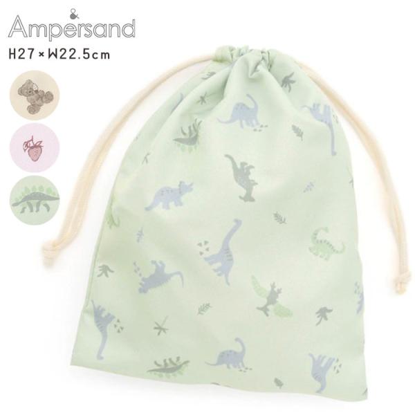 巾着 バラエティ くま ベアー いちご 恐竜 巾着袋 道具袋 体操服袋 体操服入れ 大きめサイズ 縦長 ampersand アンパサンド L374903 子供 男の子 女の子