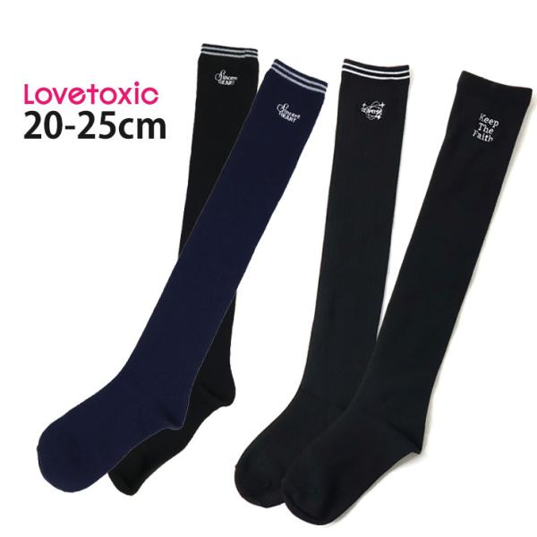 Lovetoxic ニーハイソックス ライン リブ刺しゅう 靴下 オーバーニーソックス 子供用 ラブトキシック 20-22cm 23-25cm ltx-sox5 子供 女の子