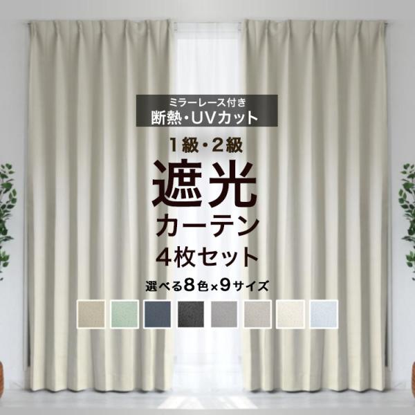 カーテン 4枚セット 遮光 1級 2級 遮光カーテン レースカーテン ミラーレース 2枚組 100cm幅 150cm幅 おしゃれ 洗える セット 北欧 UVカット 断熱 遮熱 保温