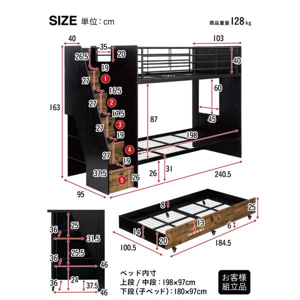 木製ベッド 親子ベッド 木製 収納ベッド 大人 オシャレ ステップ