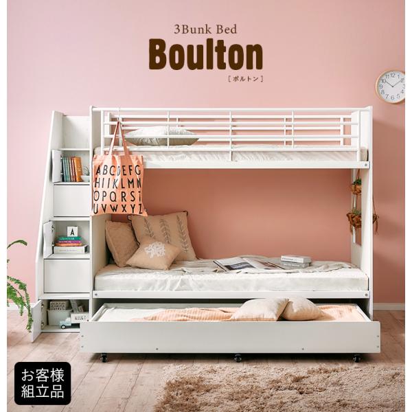 三段ベッド 3段ベッド 階段付き 階段付 階段 三段ベット 3段ベット 子供用ベッド 子供 おしゃれ ナチュラル スライド 収納 Boulton(ボルトン) 2色対応