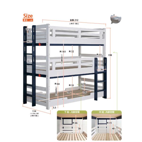 ※3段ベッド単品ページとなります。マットレス、シーツ、バッグ、衣類などは商品に付属しておりません。