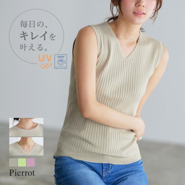 サマーニット ニット ノースリーブ リブニット UVカット 白 レディース 機能性 夏 春 MD OS