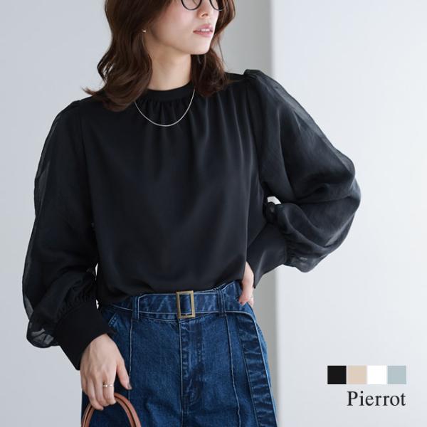 シャツ ブラウス シャーリング 襟付き オフィス 体型カバー レディース OS
