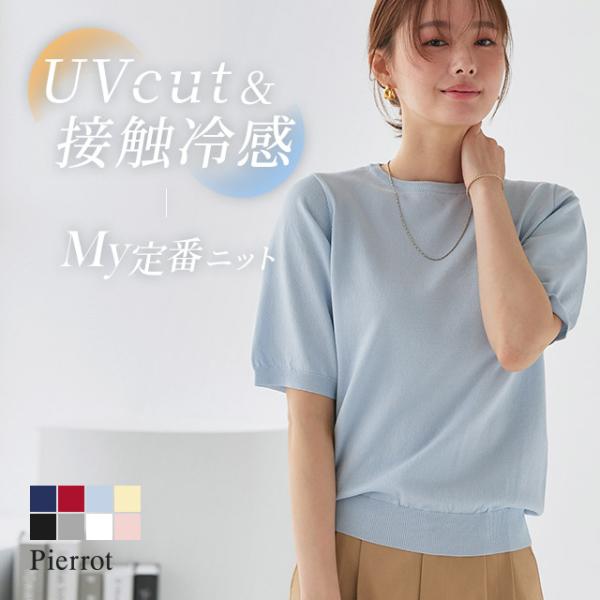 ニット レディース 半袖 接触冷感 UV ウォッシャブル 春ニット サマーニット MD 送料無料 一部予約商品