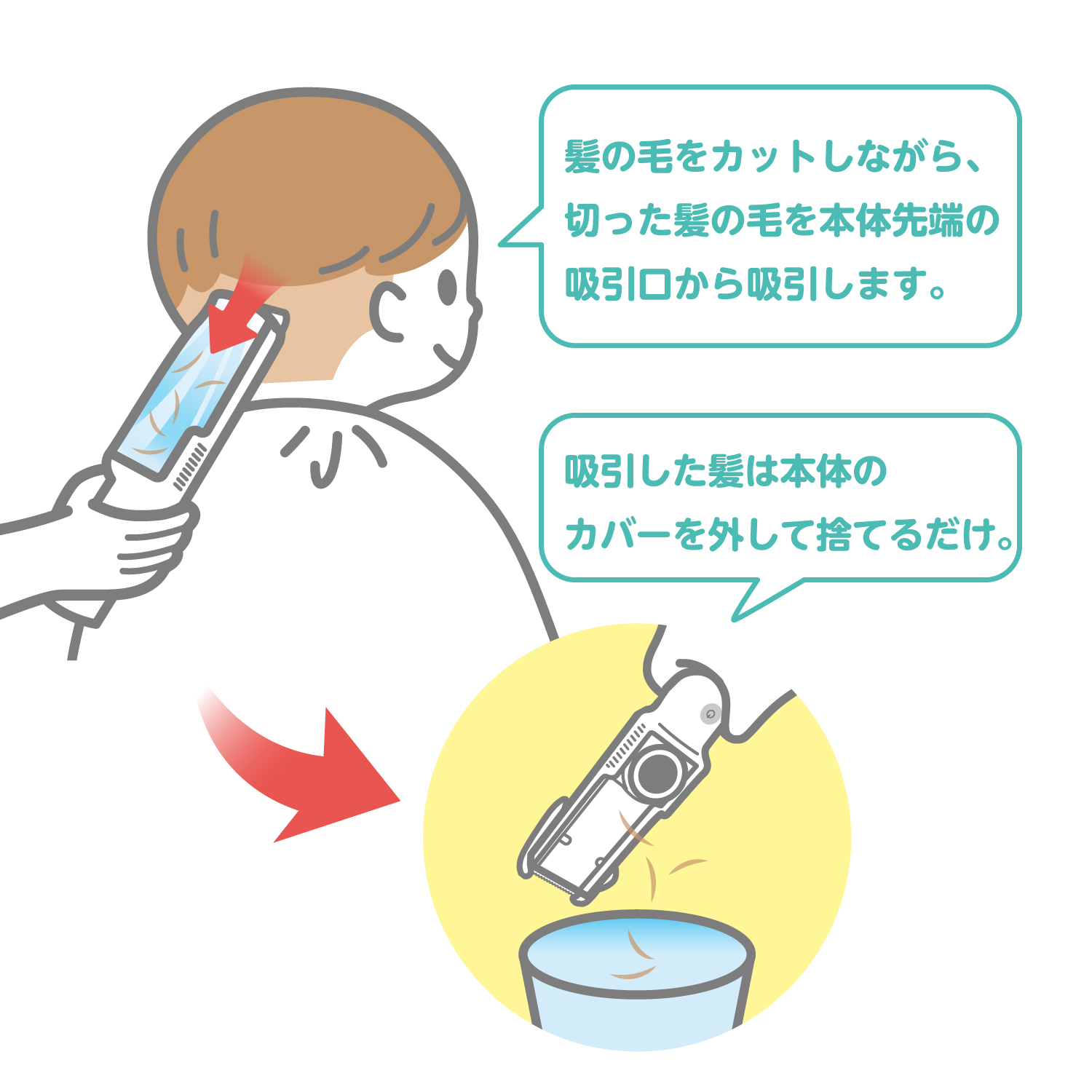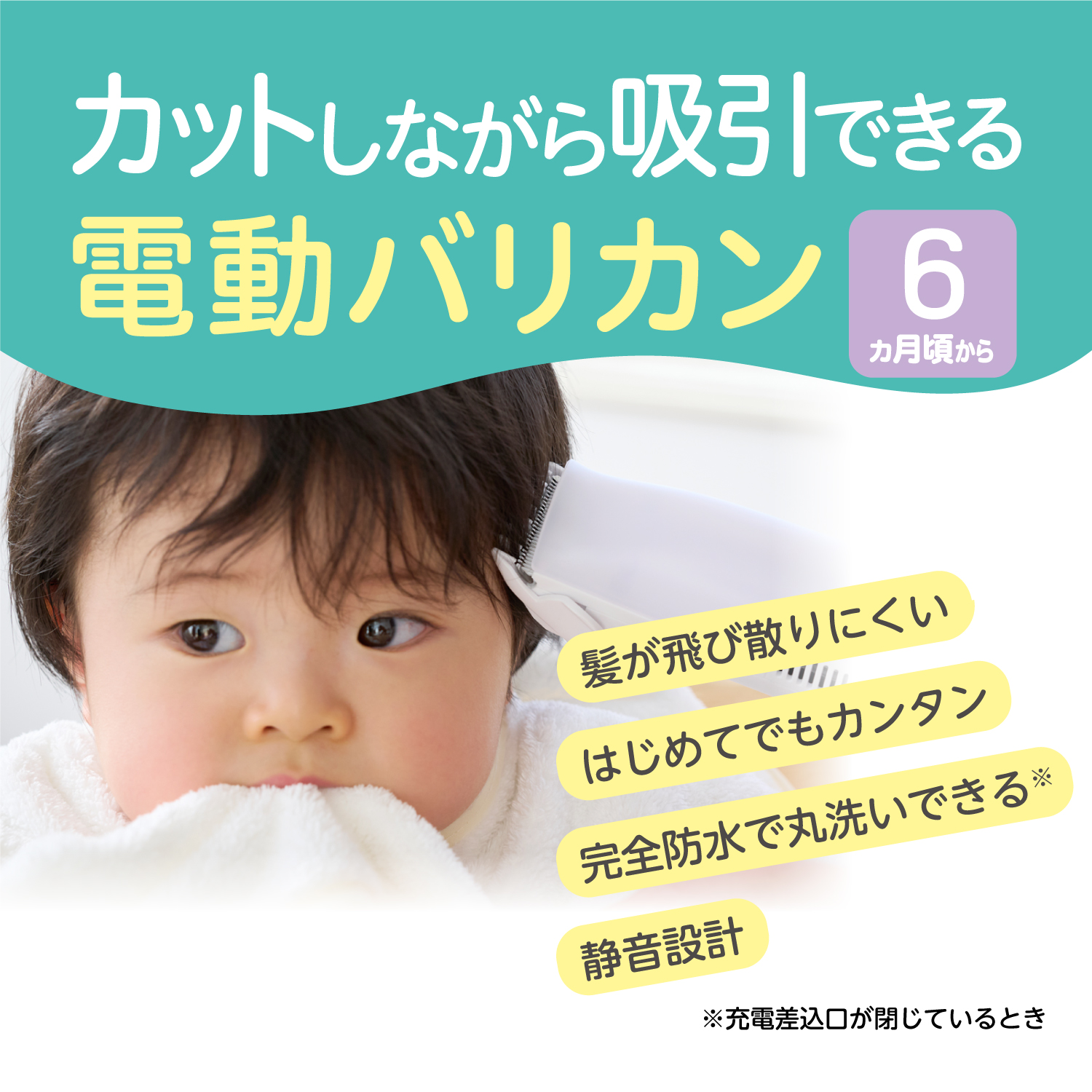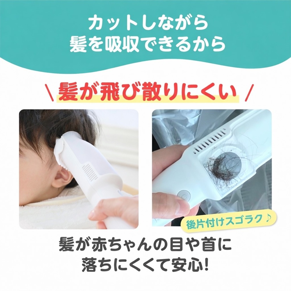 カットしながら吸引できる電動バリカン ヘアカット ヘアアレンジ 散髪 完全防水 静音 丸洗い 赤ちゃん用品 ベビー用品 ピジョン pigeon