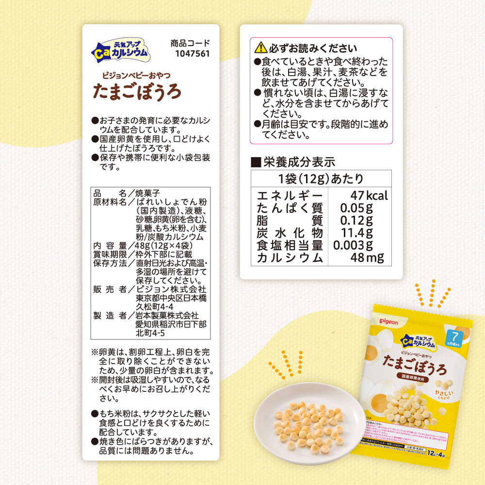 元気アップカルシウム たまごぼうろ 赤ちゃん用 乳児 離乳 離乳食 ベビーフード おやつ ベビーランチ 食事 カルシウム ピジョン pigeon