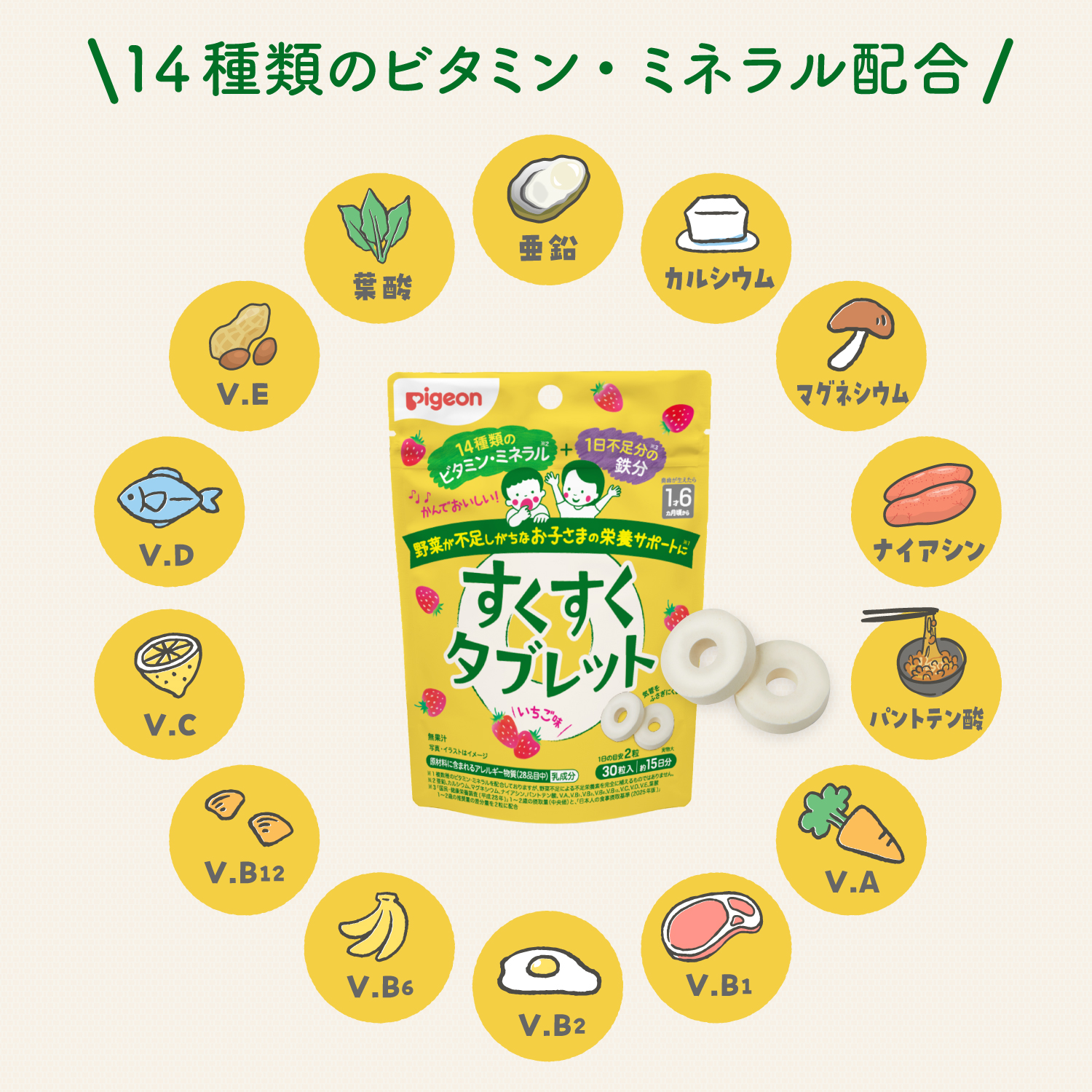 【30粒×5個】すくすくタブレット いちご味 栄養サポート 野菜不足 ビタミン ミネラル おやつ 健康 サプリ サプリメント ピジョン pigeon