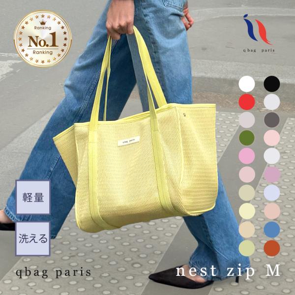 トートバッグ レディース a4 軽い 軽量 大きめ 洗える バッグ 通勤 通学 おしゃれ 誕生日 プレゼント qバッグ ブランド バック qbag paris nest zip m