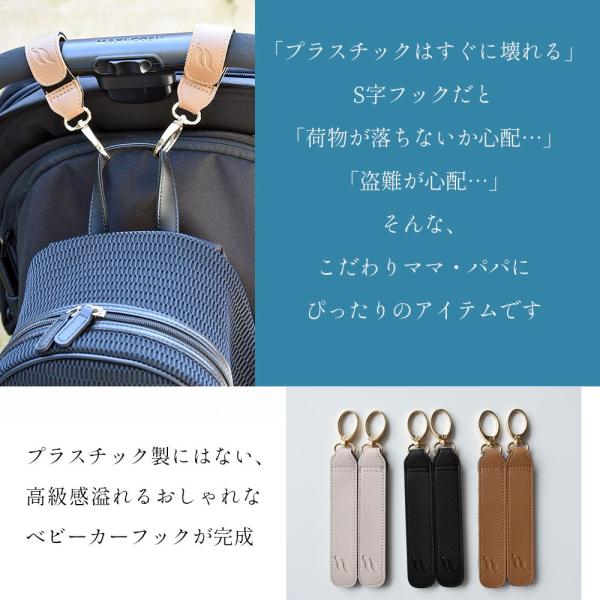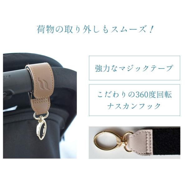 ベビーカーフック 合皮 レザー調 マジックテープ ナスカン