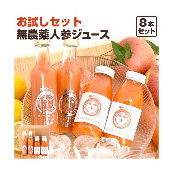 (お1人様1回限り)人参ジュース 無添加 にんじんジュース 飲み比べ お試しセット 8本 無農薬人参 野菜ジュース ゲルソン療法 爆買