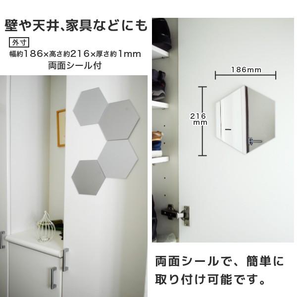 割れない鏡 六角形 Mサイズ 4枚セット ウォールミラー シンプルミラー インテリアミラー 鏡 おしゃれ