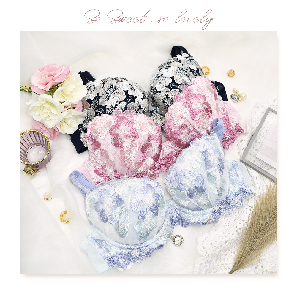 カップ下に同じ柄いきのケミカルレースをあしらうことで、