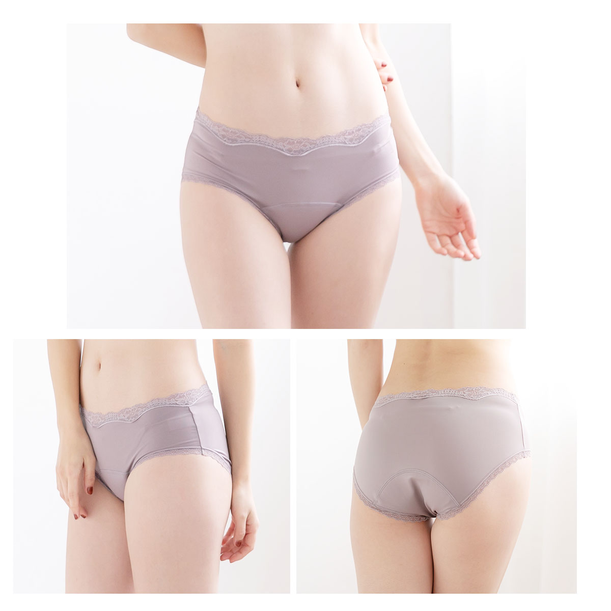 20CC対応吸水ショーツの3色セット。漏れの広がりを抑える撥水加工生地を使用。クロッチは4層構造、抗菌防臭。